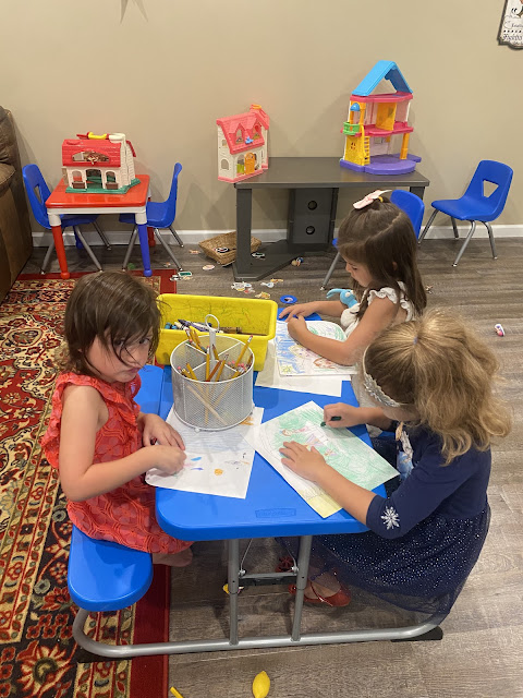 Sometimes lately, I find myself having bittersweet feelings; I love seeing our grandchildren grow and mature, yet I want time to slow down a bit!  When we moved here, most of them were available to come to Papa and Grammy's house for frequent playdates and family get-togethers, as they were either homeschooled or too young to be in school yet.  But you know how it is once they reach a certain age; the school year starts, and suddenly there are so many activities: clubs and team sports and weekend birthday parties for classmates and so much more.  It has become challenging trying to get all three families that live nearby to our house at the same time, because they've all got so much going on in their lives.  (Which, don't get me wrong, I know is good!  Believe me, we were there once.)